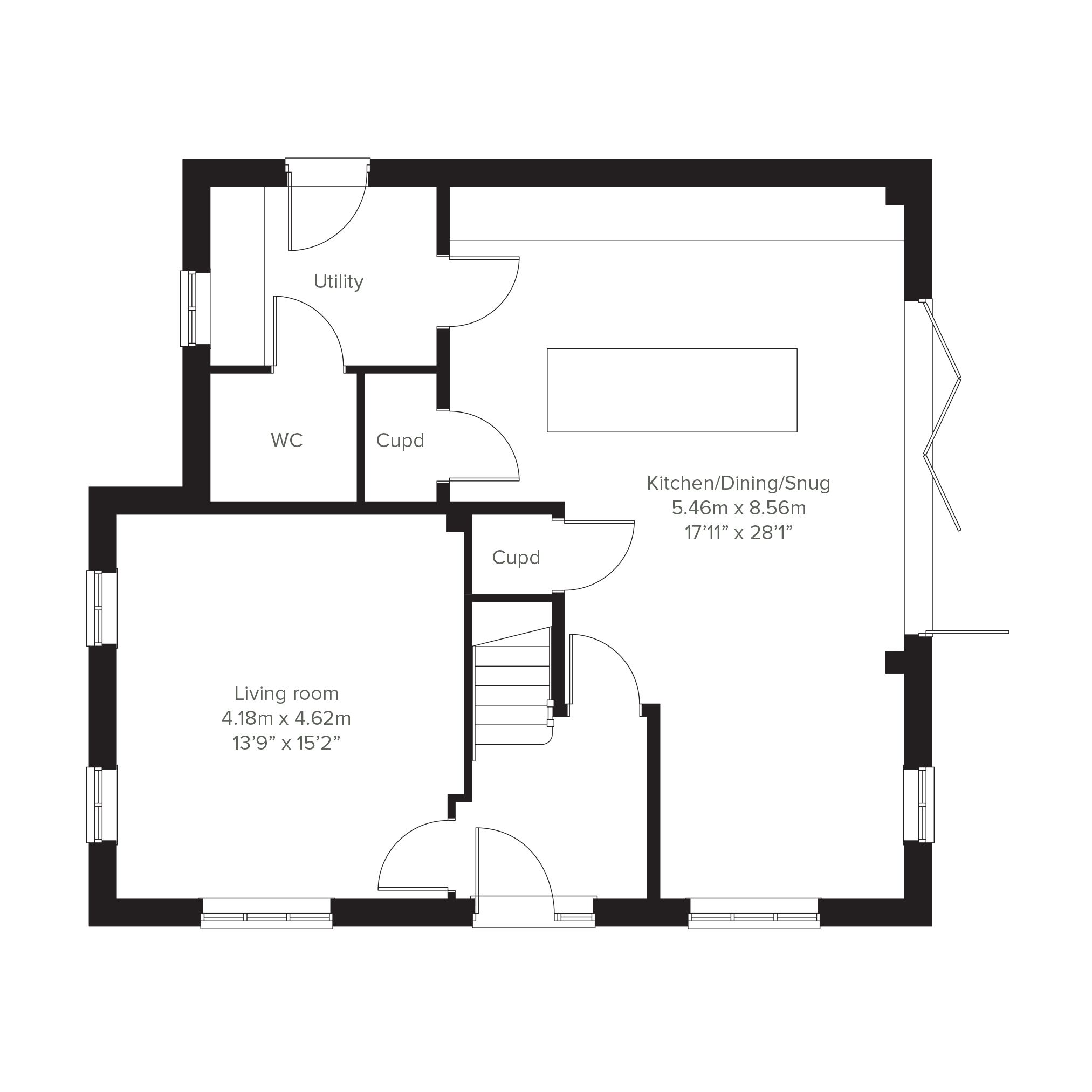 The jewel in the crown of this four-bedroom detached family home is a huge open-plan kitchen/dining room that incorporates a snug, an island, and bi-fold doors to the garden. The Seacombe doesnt stop there. Theres a separate living room, a utility room with outside access, three bathrooms, a dressing room to bedroom one, and a garage. This is a wonderful new home for all aspects of family life.