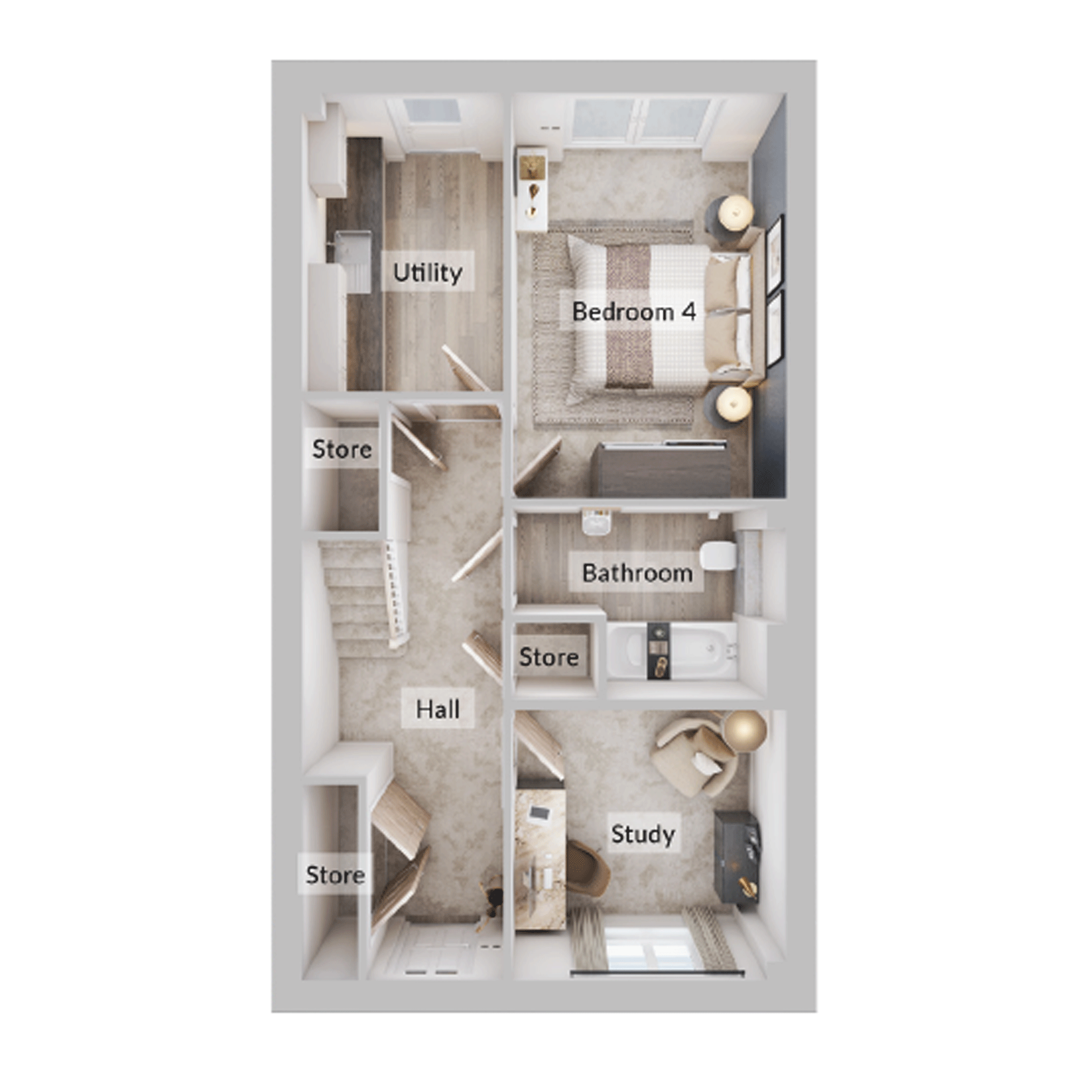 The Alston is a thoughtfully arranged four-bedroom home designed with flexibility in mind. On the ground floor, a bedroom with its own bathroom offers privacy, with a utility room conveniently placed for daily tasks. The first floor features an open kitchen/diner flowing into a separate living room a perfect space for entertaining or relaxing. Upstairs there are two double bedrooms, including one with an en suite, plus a third smaller bedroom ideal for a study or snug. The Alston is made for modern family life with room to grow.