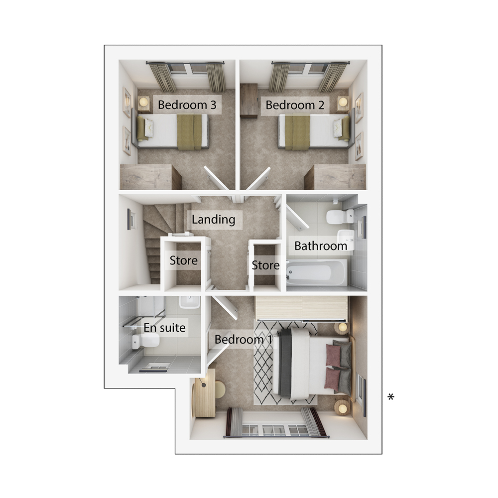 Designed with families in mind, the Woodside is a stunning three-bedroom detached home. Theres also a generous front-aspect living room and an en suite to bedroom one.