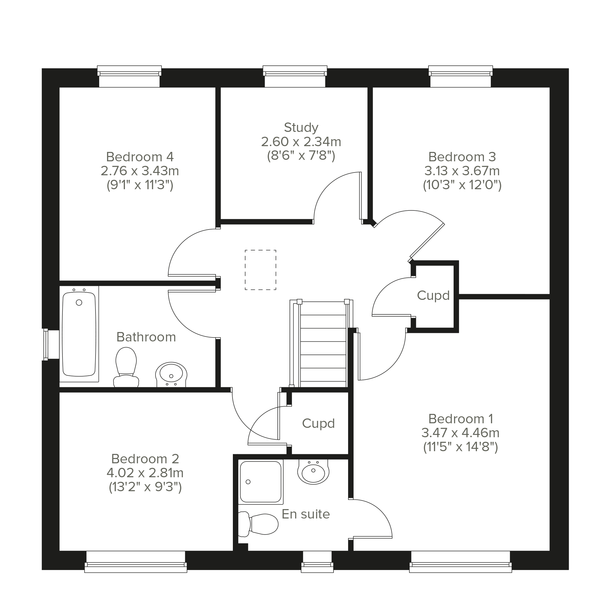 Four bedrooms, two bathrooms and a study are a good start for a new family home. The Cullen adds an integral garage, a kitchen/dining room with bi-fold doors to the garden and a peaceful separate living room to the living accommodation. This appealing new home gives you work-at-home flexibility, an optional guest bedroom, or simply space for the family to grow into.