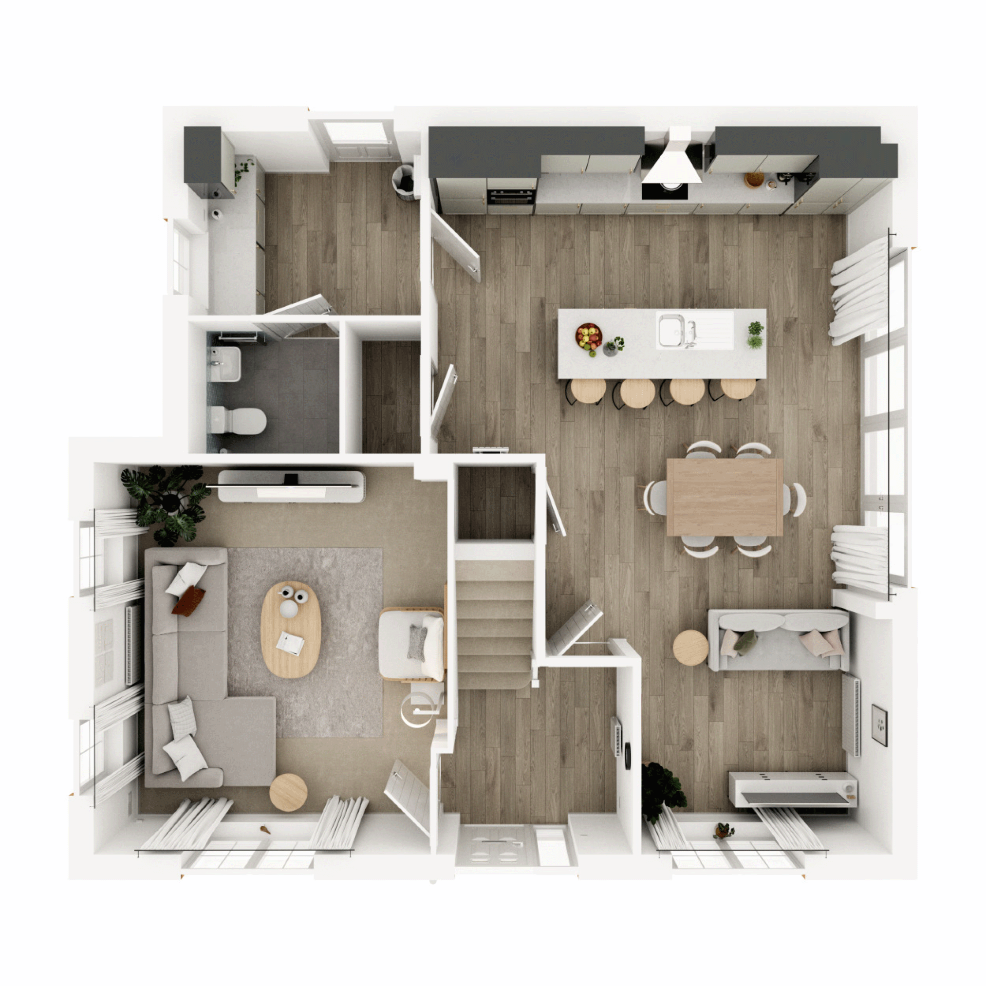 The jewel in the crown of this four-bedroom detached family home is a huge open-plan kitchen/dining room that incorporates a snug, an island, and bi-fold doors to the garden. The Seacombe doesnt stop there. Theres a separate living room, a utility room with outside access, three bathrooms, a dressing room to bedroom one, and a garage. This is a wonderful new home for all aspects of family life.