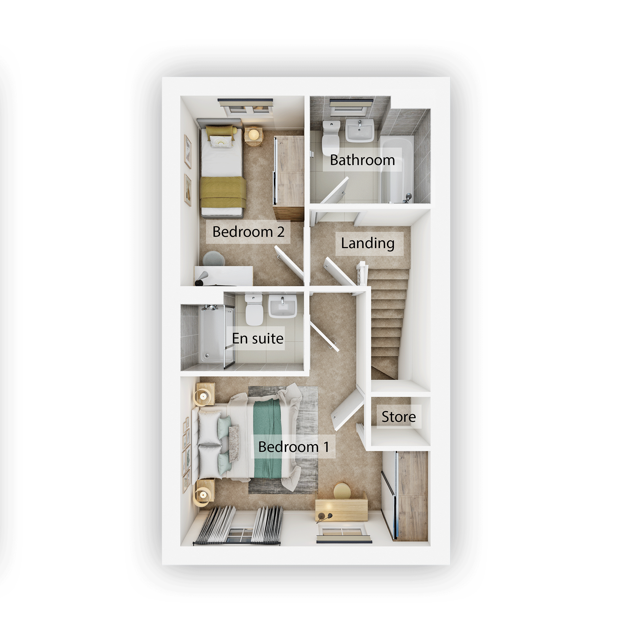 The two-bedroom Cromer has a modern open plan kitchen/dining room rear-aspect living room with French doors to the garden. A handy downstairs WC and great storage complete the ground floor.