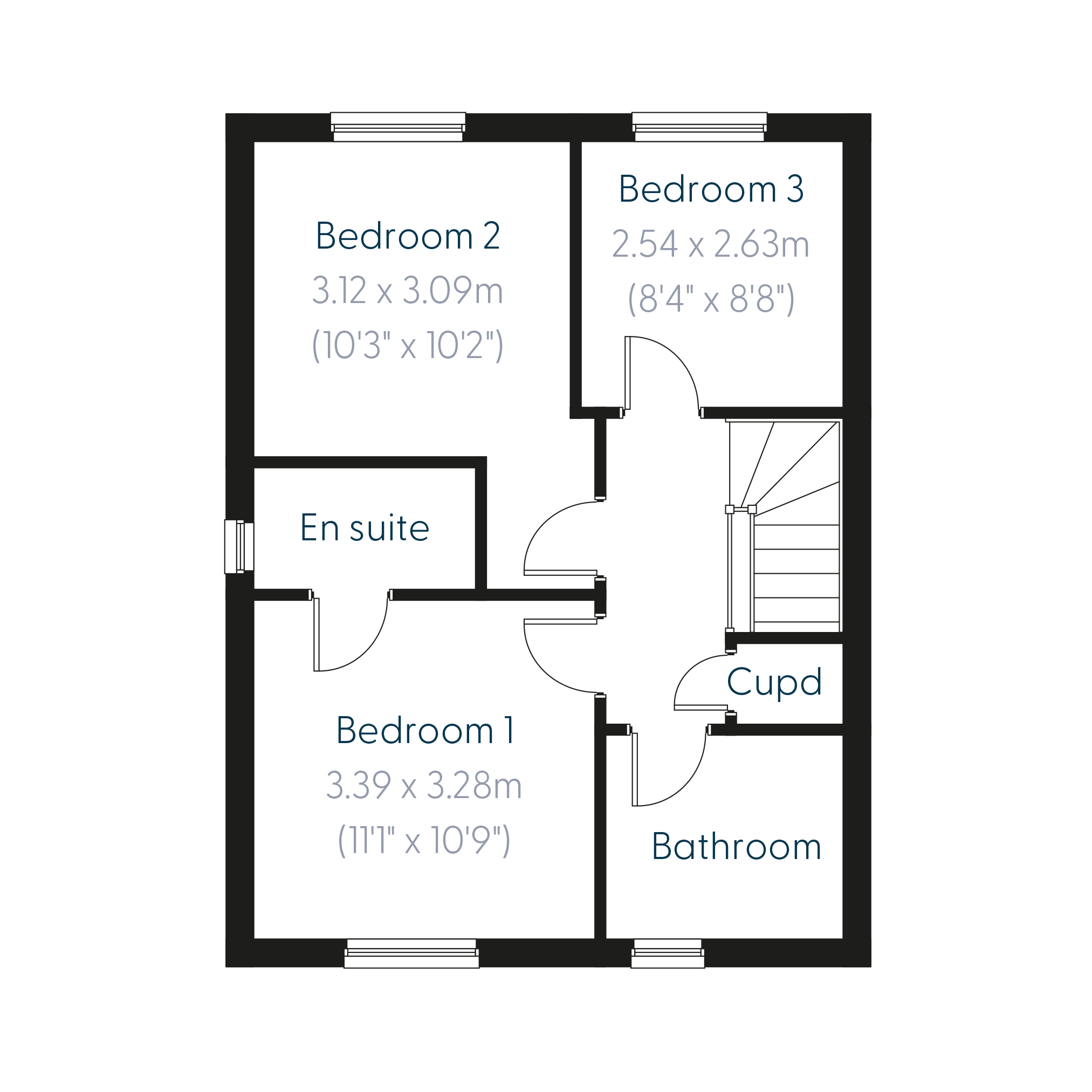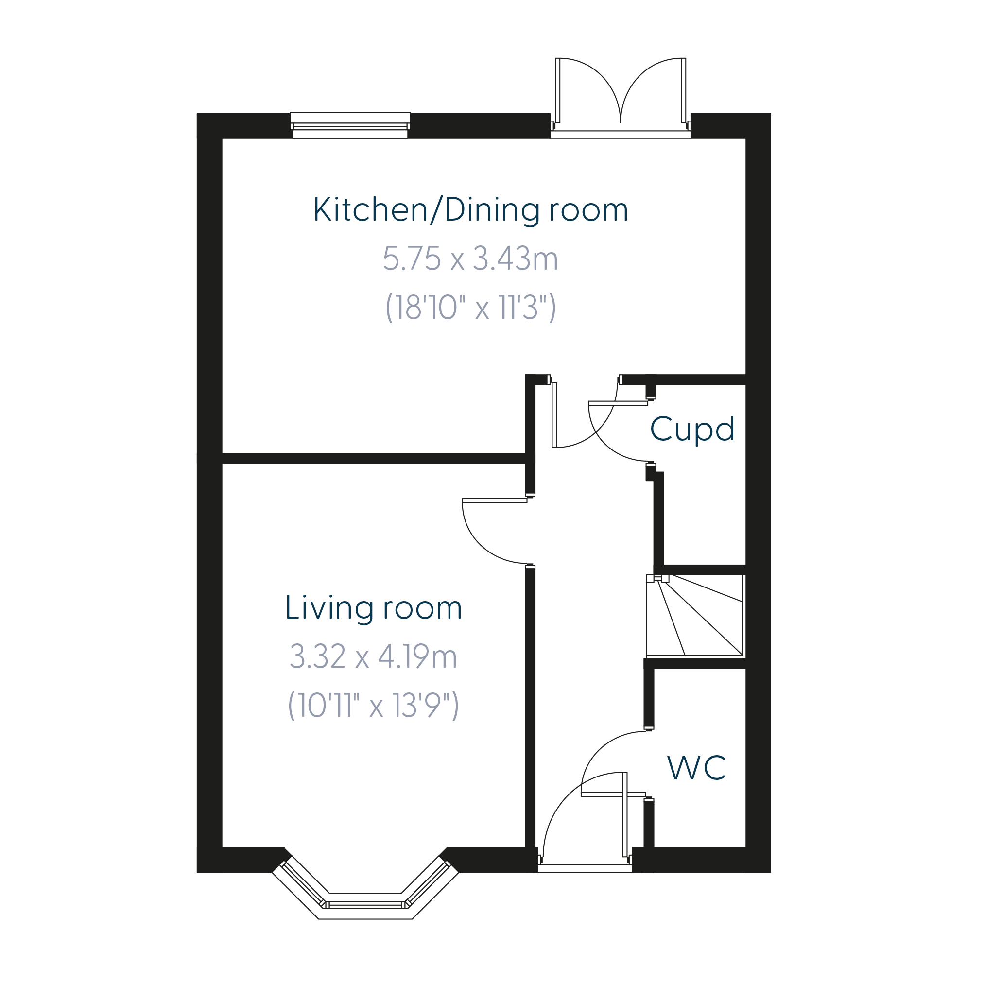 The two-bedroom Cromer has a modern open plan kitchen/dining room rear-aspect living room with French doors to the garden. A handy downstairs WC and great storage complete the ground floor.