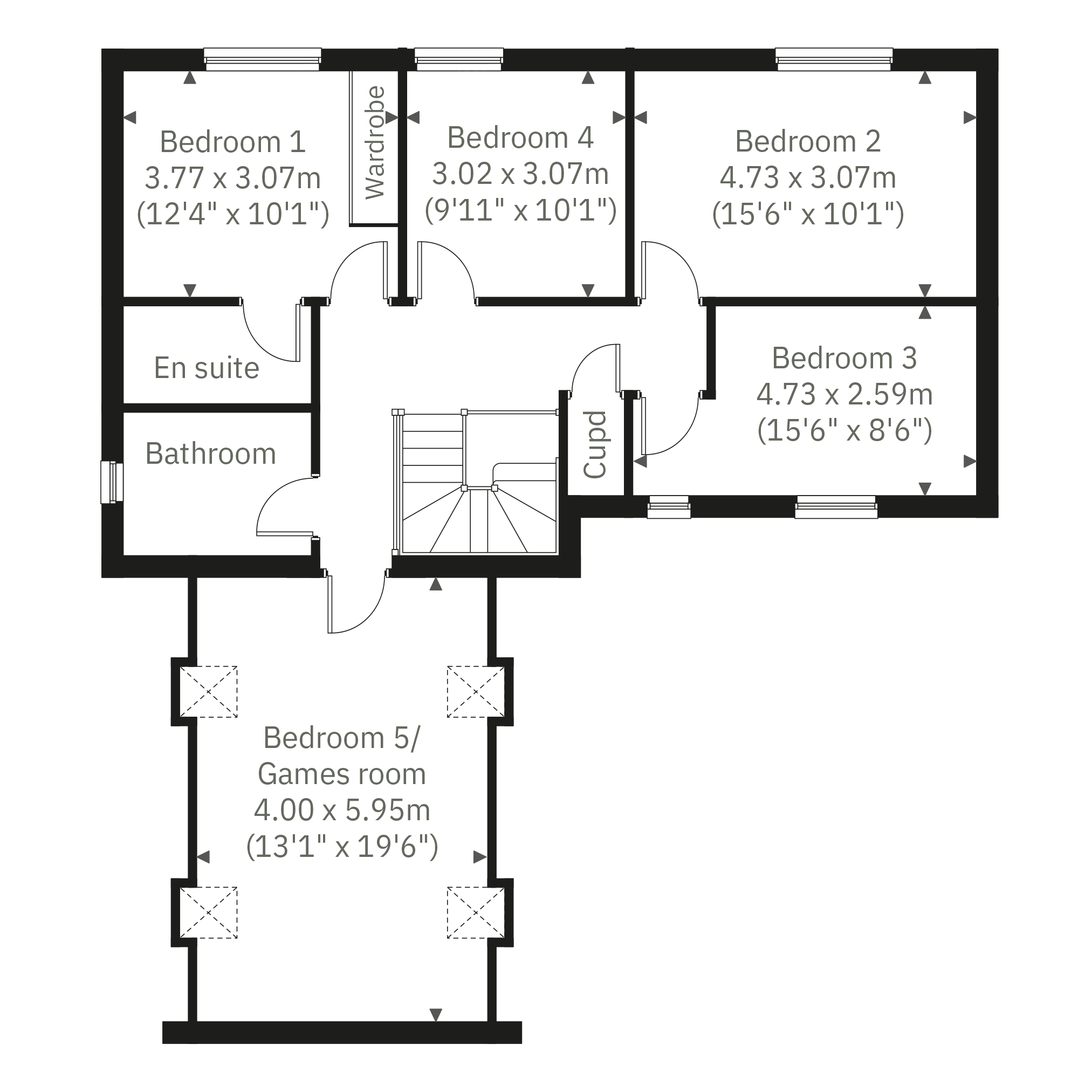 The Wixford features a separate living room with French doors leading to the garden, an open plan kitchen/dining room and a garden room. Theres a utility room, downstairs WC and a double integral garage. The first floor holds four bedrooms and a family bathroom. Bedroom one benefits from an en suite, whilst the fifth bedroom could also be used as a games room.