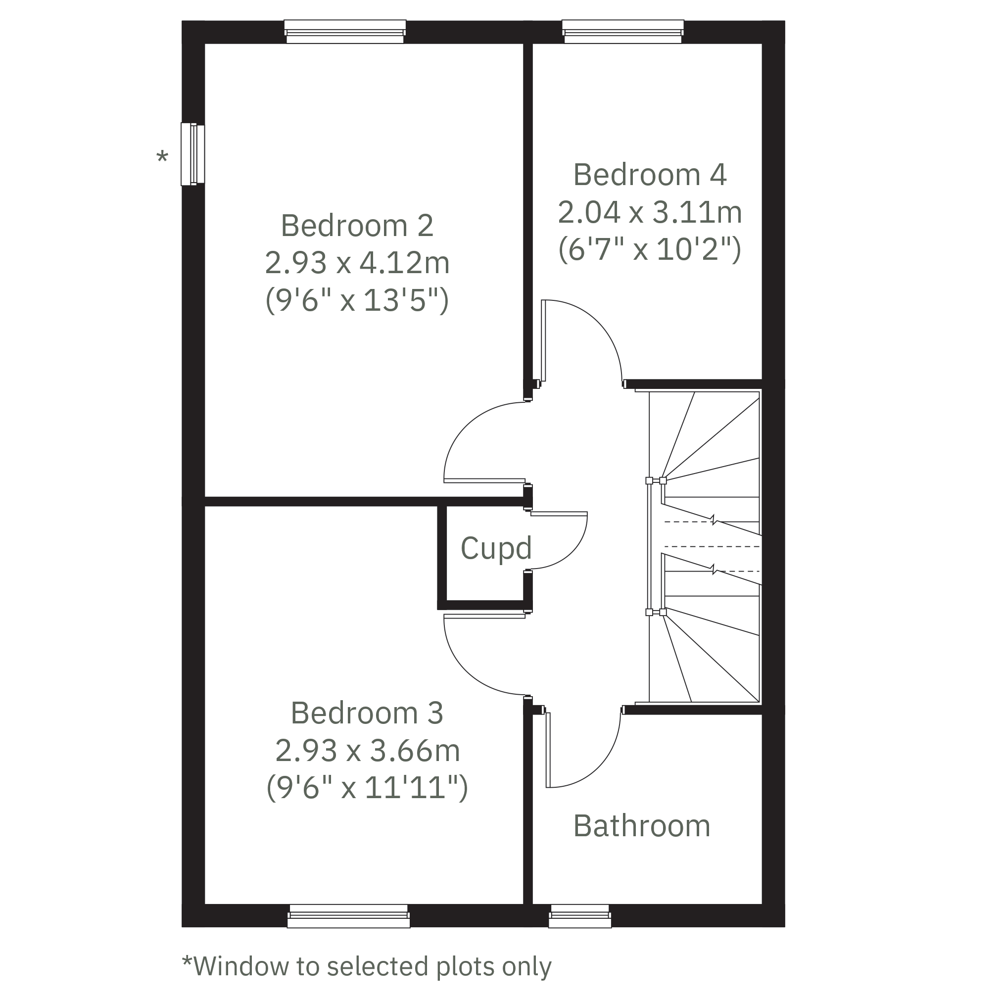 Modern three-storey living at its best, the Foxcote is a four-bedroom home ideal for families. It features an open plan kitchen/dining room, a light-filled living room with French doors leading into the garden, plus a handy under-stairs storage cupboard and WC. The first floor has three good-sized bedrooms and the main family bathroom, and on the top floor, theres an impressive bedroom one with en suite.