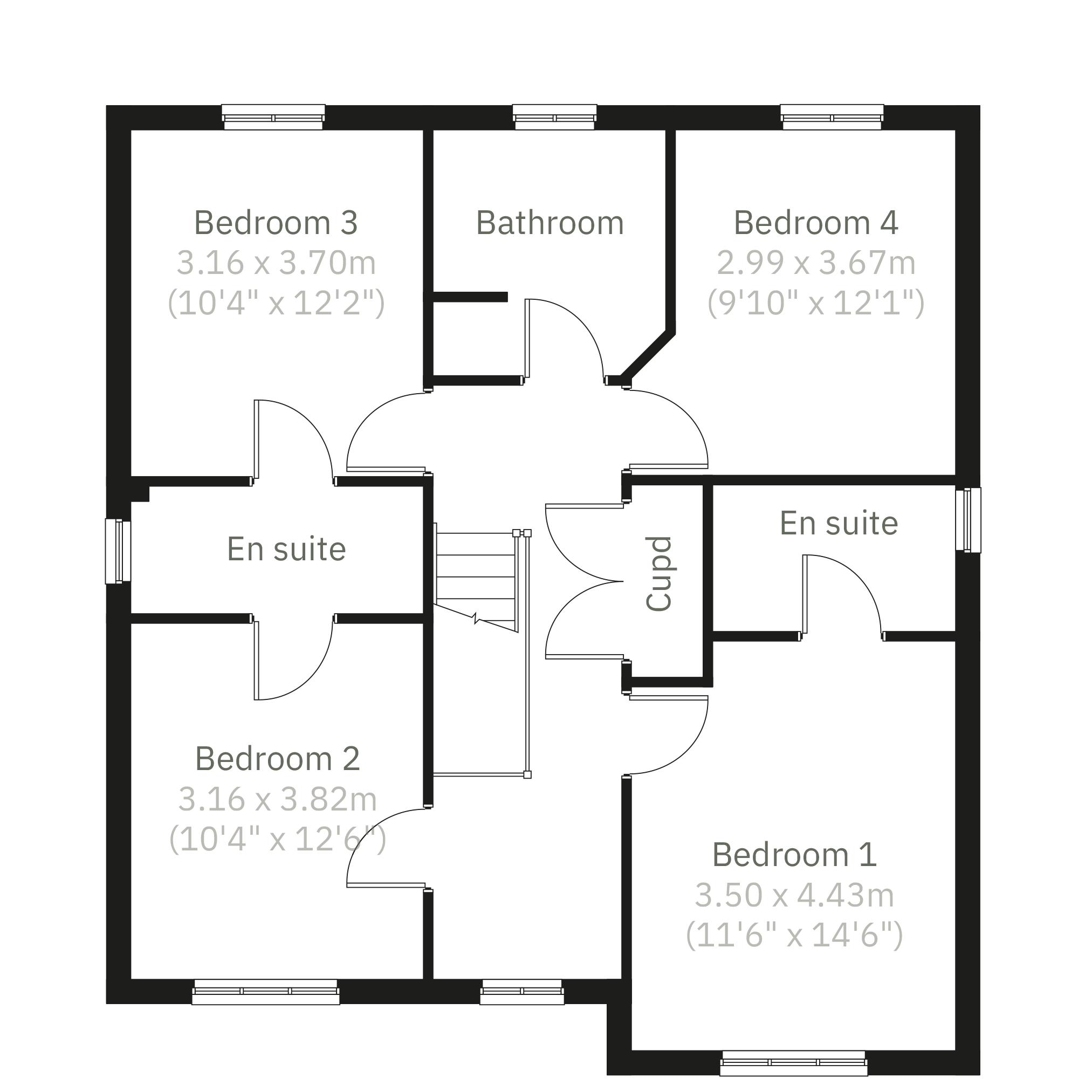 Elegant and practical, the Hollicombe features a spacious kitchen/family room with bi-fold doors to the garden and a feature bay window in the front-facing living room. The layout includes an integral garage with convenient internal access and a separate utility room with a door to the outside. Upstairs, four bedrooms and three bathrooms provide generous living space perfect for busy family life.