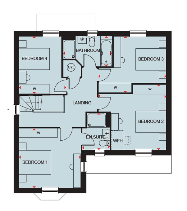 Overlooking existing greenfield. Next to trees. Visit us to find out more. Plot 29 | The Blyford | Afon Las, Cardiff | David Wilson Homes.