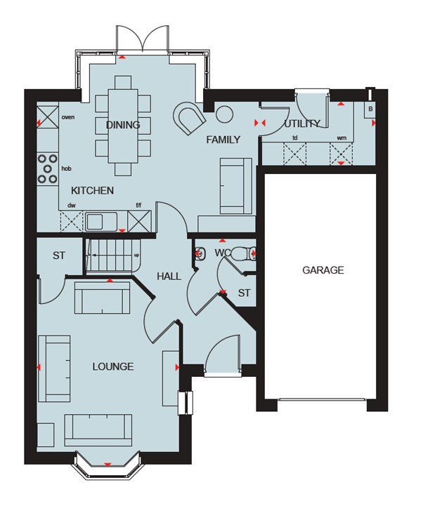 Brand new home with PHOTOVOLTAIC SOLAR PANELS and an EV CHARGER. Plot 32 | The Meriden | Afon Las, Cardiff | David Wilson Homes. There`s also a bay fronted lounge which is perfect for relaxing in.