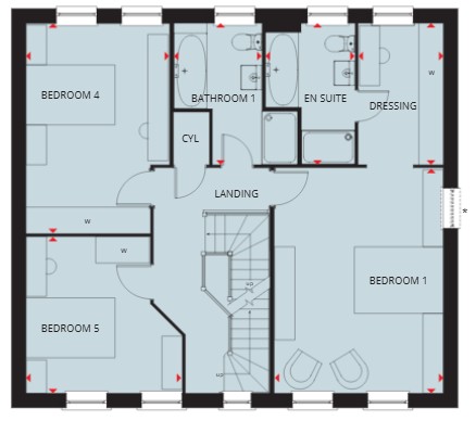 UNDERFLOOR HEATING AND AIR SOURCE HEAT PUMPS INCLUDED AS STANDARD - PLOT 72 THE BUCKINGHAM - A five bedroom detached family home, set over 3 floors. The ground floor offers an open-plan kitchen with a dining room, study, lounge and French doors to the garden from the kitchen and dining room. The first floor hosts three double bedrooms, your the main with en suite and dressing area and a four piece family bathroom. The second floor includes two further double bedrooms and a four piece family bathroom. This home includes a range of energy-efficient features including solar PV panels and more.