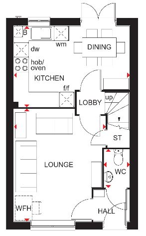 UPGRADED KITCHEN & INTEGRATED APPLIANCES - FLOORING PACKAGE INCLUDED - THE ARCHFORD AT HAMPTON BEACH - MID-TERRACE 3 BEDROOM HOME - This three bedroom home includes an open plan kitchen with a dining area and French doors to the garden. A spacious lounge and a cloakroom complete the ground floor. Upstairs you will find an en suite main bedroom, a further double bedroom, a single bedroom or home office and a family bathroom.