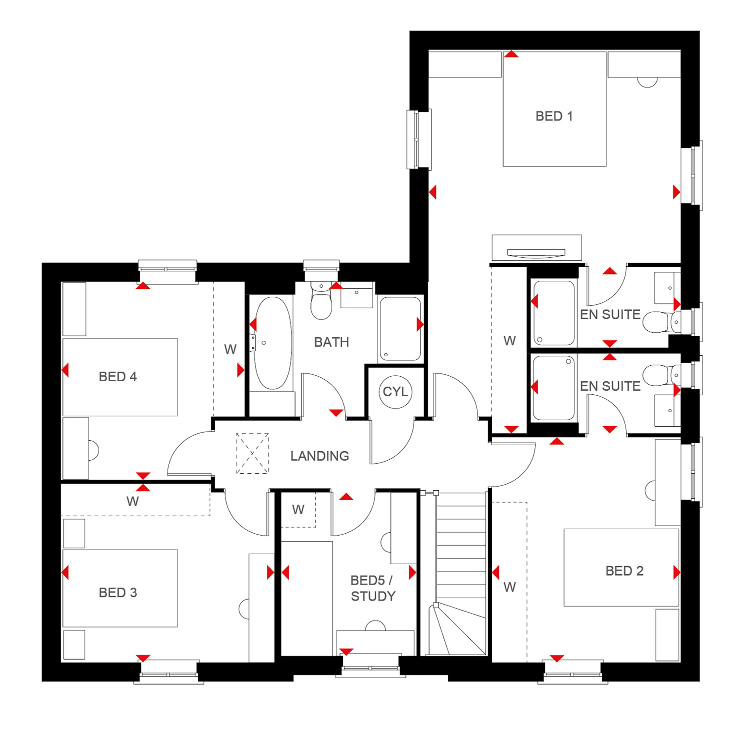 This spacious five-bedroom home is perfect for growing families. Downstairs features a large lounge with French doors to the garden, a modern kitchen-diner with a breakfast bar, a utility room, and a bay-fronted dining room for entertaining. Upstairs offers four double bedrooms, two with en suites, a single fifth bedroom ideal as a study, and a family bathroom with both a shower and bath.