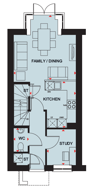 View The Langstone at this development. The open-plan kitchen/dining room has a glazed bay which leads onto your rear garden through French doors. The ground floor includes a private study.