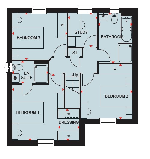 This Blyford features an OPEN-PLAN KITCHEN-DINER with FRENCH DOORS to your garden, a SPACIOUS LOUNGE and a HANDY UTILITY ROOM. Upstairs there are three DOUBLE BEDROOMS with the main bedroom featuring its own EN SUITE and DRESSING AREA, plus a handy HOME OFFICE. An integral garage with DRIVEWAY PARKING for two cars completes this lovely home. Plot 51, the energy-efficient Blyford at Drakelow Park