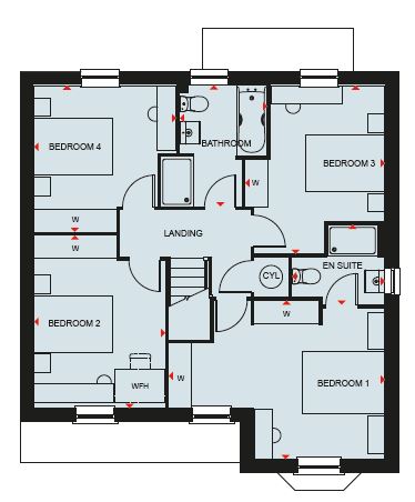 Downstairs you`ll find your OPEN-PLAN KITCHEN-DINER with FRENCH DOORS to your garden, a handy UTILITY ROOM and a SPACIOUS LOUNGE. Upstairs are FOUR DOUBLE BEDROOMS with the main bedroom featuring its own EN SUITE. A GARAGE with a PRIVATE DRIVEWAY completes this lovely home. Plot 56, the energy-efficient Meriden at Drakelow Park