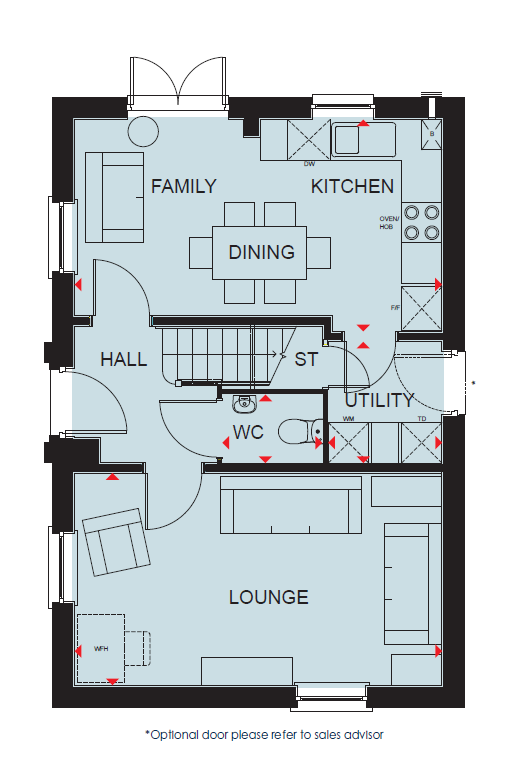 Key Worker Deposit Contribution Scheme | David Wilson Homes | Overlooking open space | Cul-de-sac location | The Holden features an upgraded open-plan dining kitchen with French doors leading to the ...