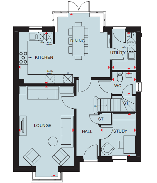 The Kirkdale features an open-plan kitchen with dining and family area and French doors leading onto to the garden. Downstairs, you`ll find a handy utility room and a bay fronted lounge.