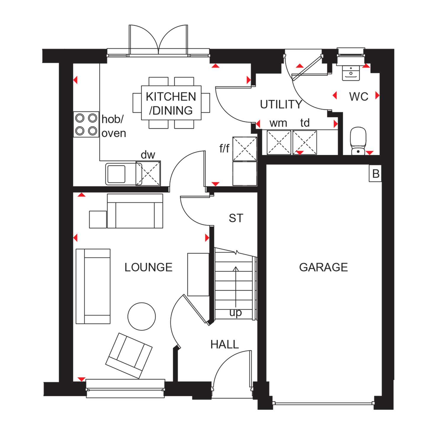 The Dalmally blends elegance and practicality with an open-plan kitchen/dining/family area and French doors out to your garden. A spacious lounge, utility room, and integral garage complete your home.
