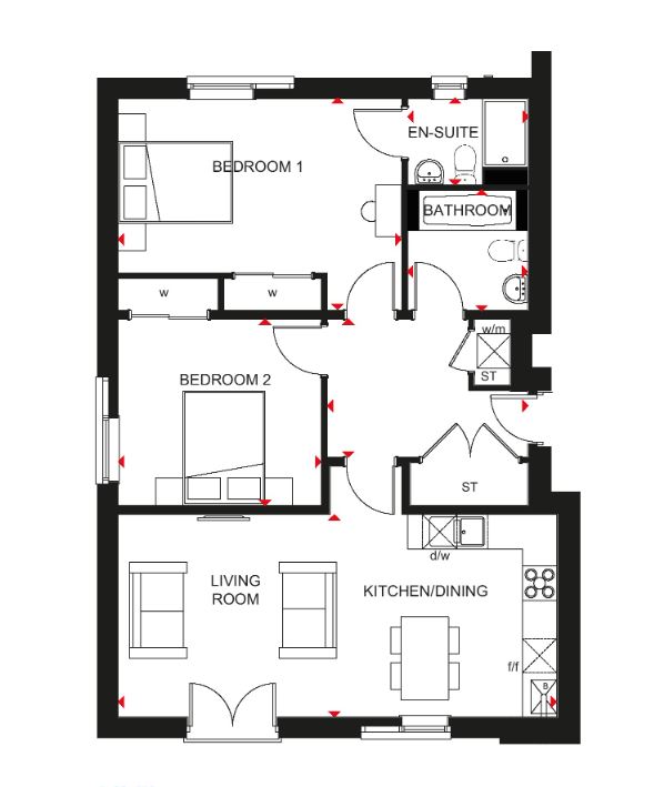 The Dee is perfect for those looking for stylish apartment living. The apartment is then complete with 2 spacious double bedrooms with main bedroom featuring its own en suite.