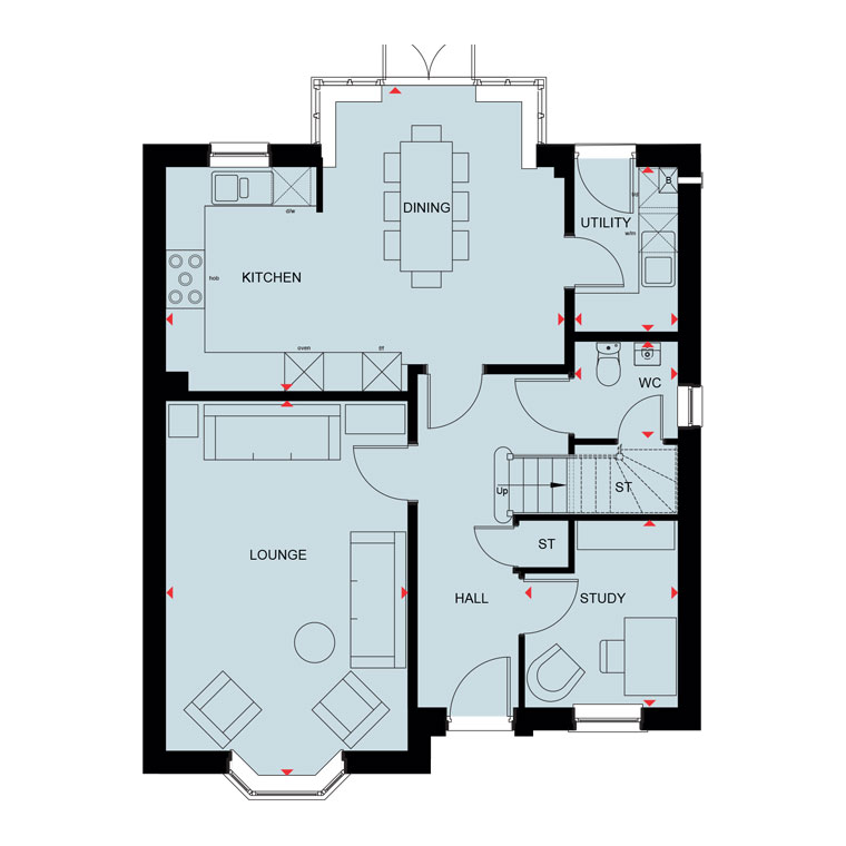 THE HOLDEN, 4 BEDROOM HOME AVAILABLE WITH KEY WORKER DEPOSIT CONTRIBUTION WORTH 20,750. The Holden is a stylish and spacious, energy-efficient home with GARAGE. The open-plan kitchen with dining and family area features a glazed bay with FRENCH DOORS. There is also a UTILITY ROOM. The living room provides relaxation space, whilst the study is the ideal home office. The main bedroom includes an en suite. The bathroom is close to another 3 double bedrooms.