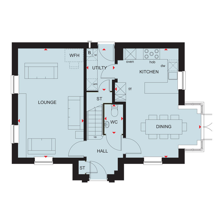 The Millford is a stylish 4 bedroom energy-efficient home with integral garage. On the ground floor is a family kitchen diner with glazed French doors to the garden.