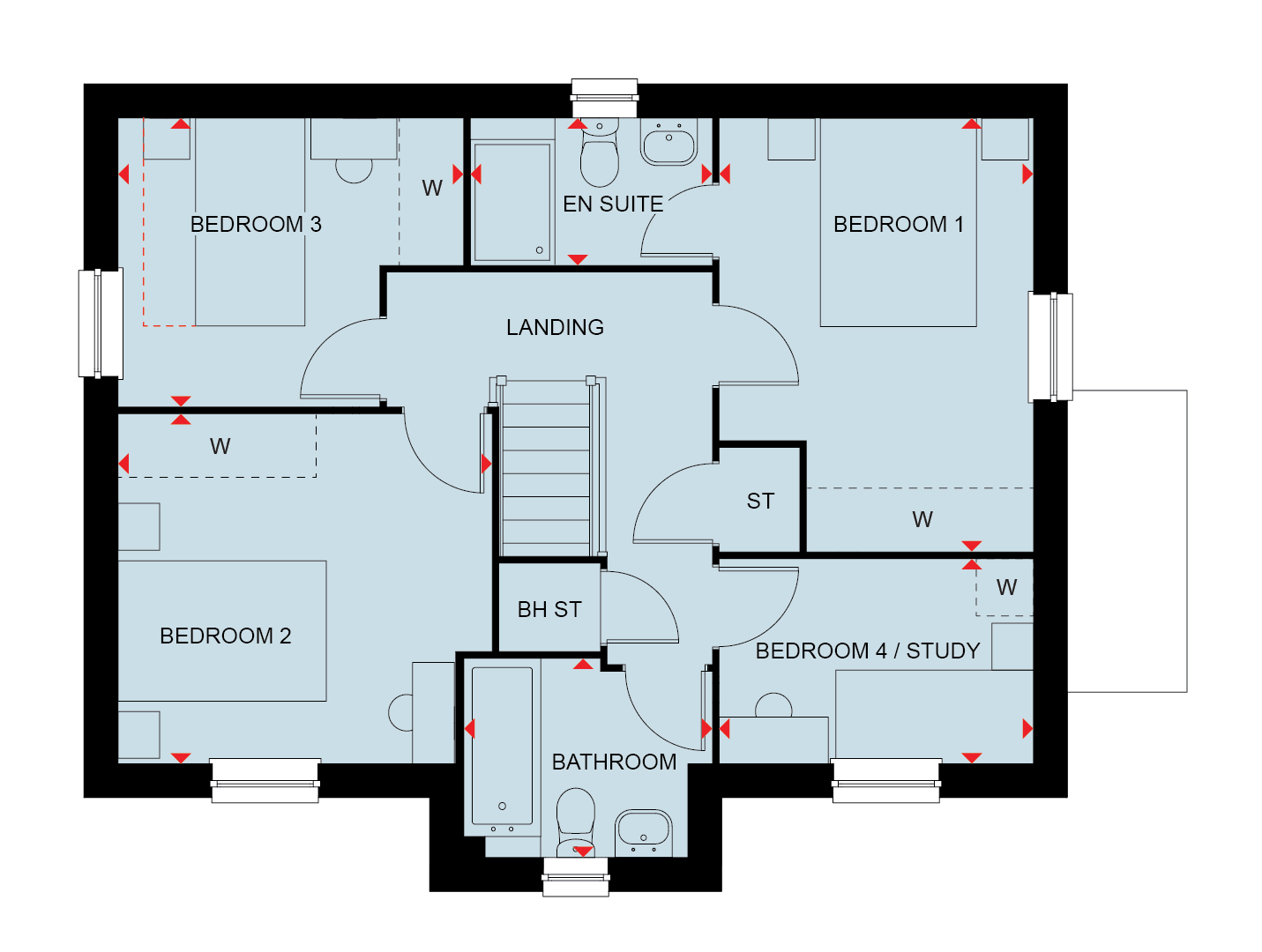 A spacious four bedroom home. Enjoy family time in your open-plan kitchen/dining room where you can let the outside in with French doors. The spacious lounge is an ideal place to unwind after a long day. A cloakroom and utility room are practical additions too. Upstairs you`ll find three double bedrooms, a single bedroom or home office, an en suite and the family bathroom.