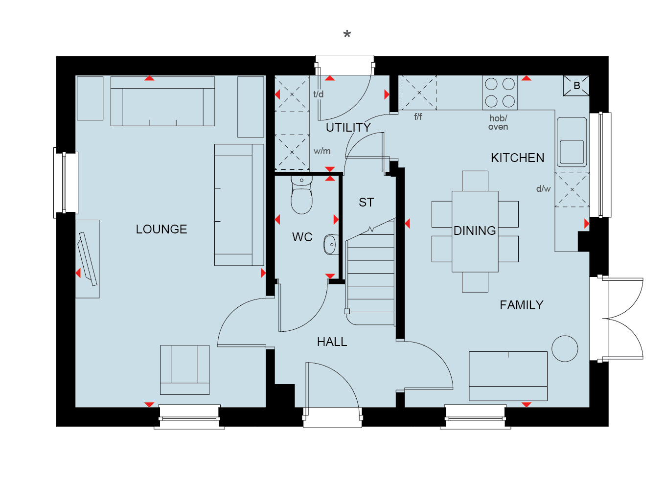 A spacious four bedroom home. Enjoy family time in your open-plan kitchen/dining room where you can let the outside in with French doors. A cloakroom and utility room are practical additions too.