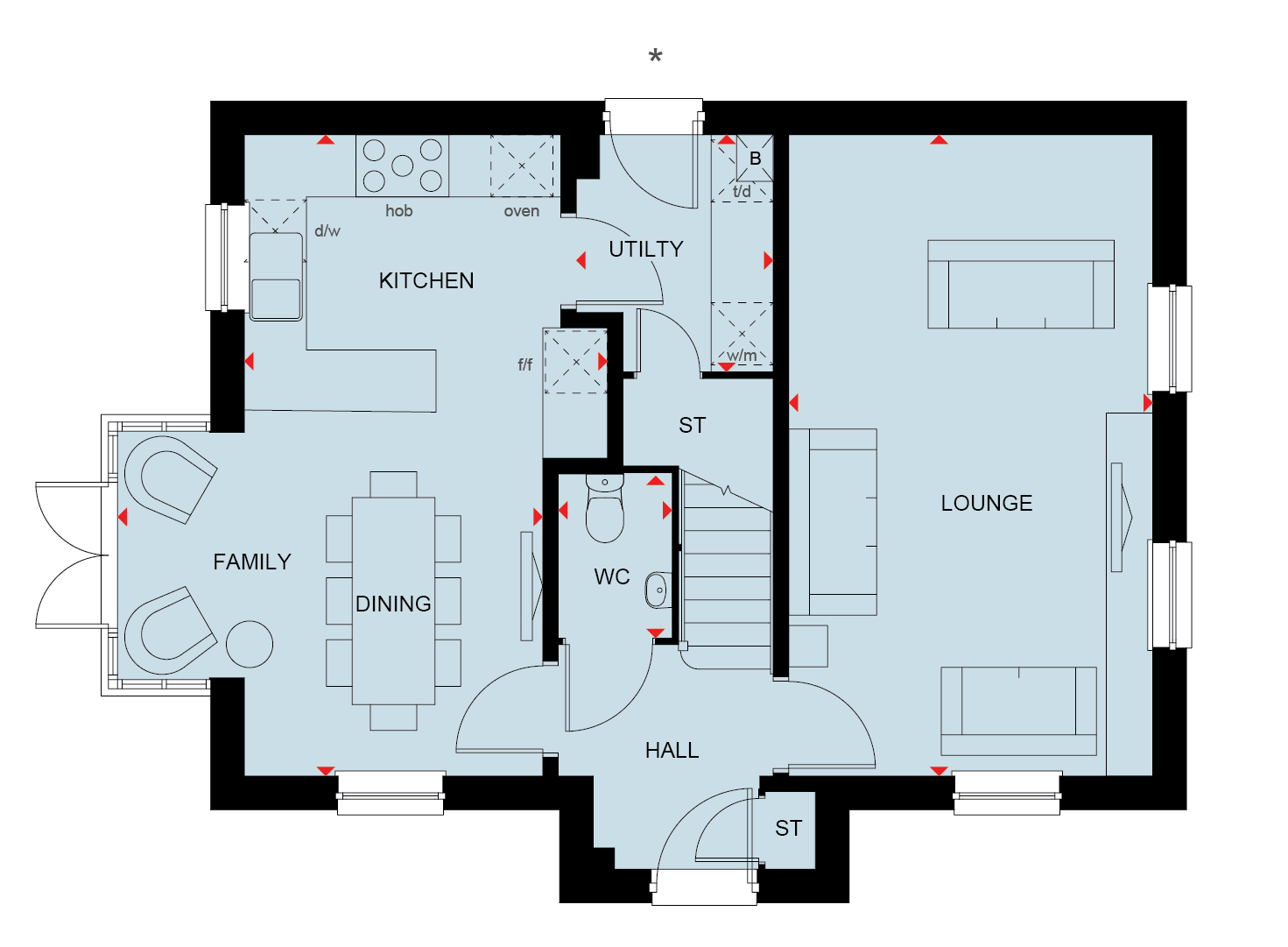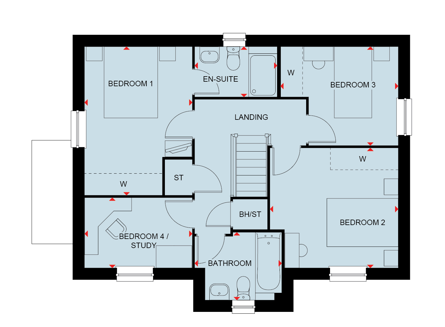 A spacious four bedroom home. Enjoy family time in your open-plan kitchen/dining room where you can let the outside in with French doors. The spacious lounge is an ideal place to unwind after a long day. A cloakroom and utility room are practical additions too. Upstairs youll find three double bedrooms, a single bedroom or home office, an en suite and the family bathroom. Planning disclaimer: In our marketing, we may give a room a particular description, that same room may be described differently in our planning documents and drawings (e.g. a bedroom may be described as a study for planning purposes). See here for more information.