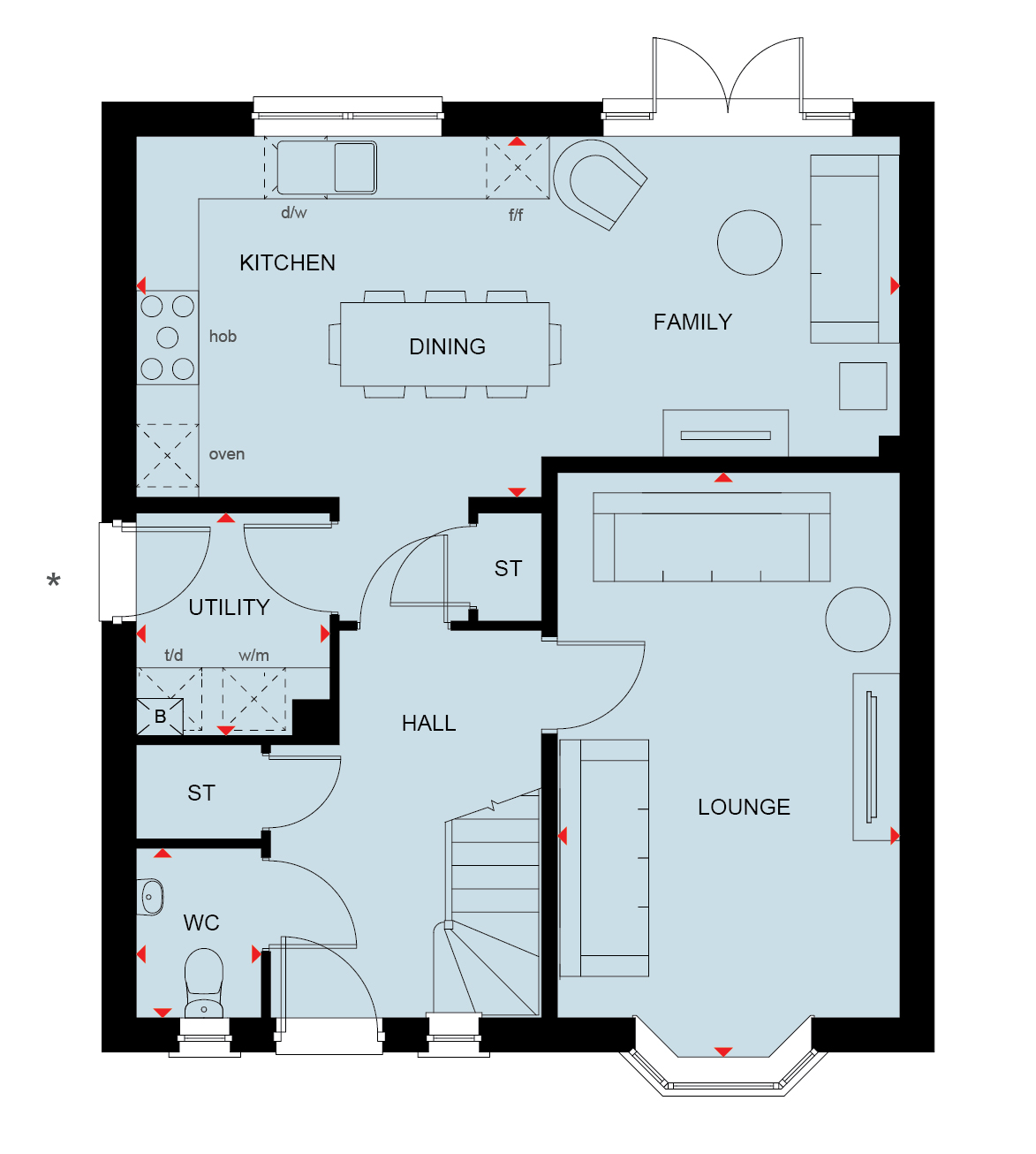 A spacious four bedroom home. Enjoy family time in your open-plan kitchen/dining room where you can let the outside in with French doors. A cloakroom and utility room are practical additions too.