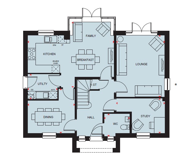 DOUBLE GARAGE & PRIVATE DRIVE | EV CHARGING & UNDERFLOOR HEATING | END OF CUL-DE-SAC. The Kelham boasts a spacious entrance hall flowing into an open-plan kitchen/breakfast room with a family area and walk-in glazed bay. It includes a bay-fronted dining room, study, and lounge with French doors. Upstairs offers a main bedroom with dressing area and en suite, three further doubles plus a family bathroom. Plot 82, the energy-efficient Kelham at Oak View, Billericay.