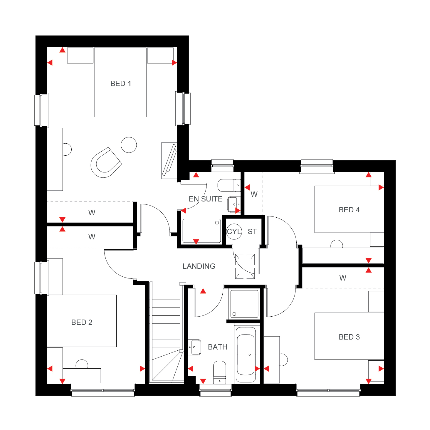 • Four double bedrooms