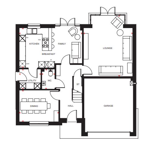 The Deeside offers you elegant living with both the kitchen/family area and spacious lounge opening onto your garden through French doors. Upstairs provides flexible living options with 4 double bedrooms - 2 with en suite shower rooms - and a single bedroom offering the option of a home office or dressing room. A separate dining room, utility room, WC and spacious garage enhance your home.