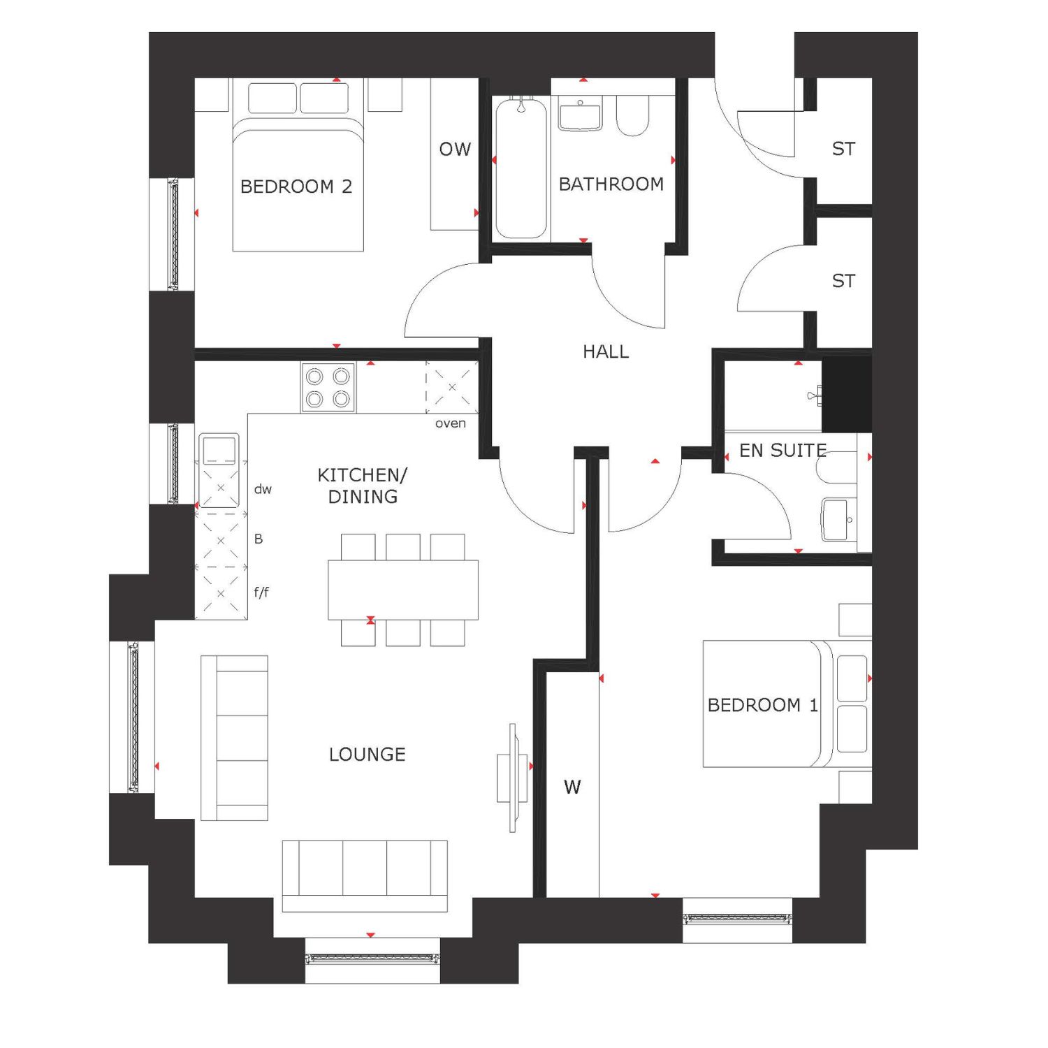 The open-plan kitchen/dining/lounge area in the Strathyrum is the perfect room to relax or entertain, with three windows letting in plenty of light. There are two double bedrooms, with the main bedroom featuring an en suite, as well as a full bathroom and two cupboards out in the hallway.