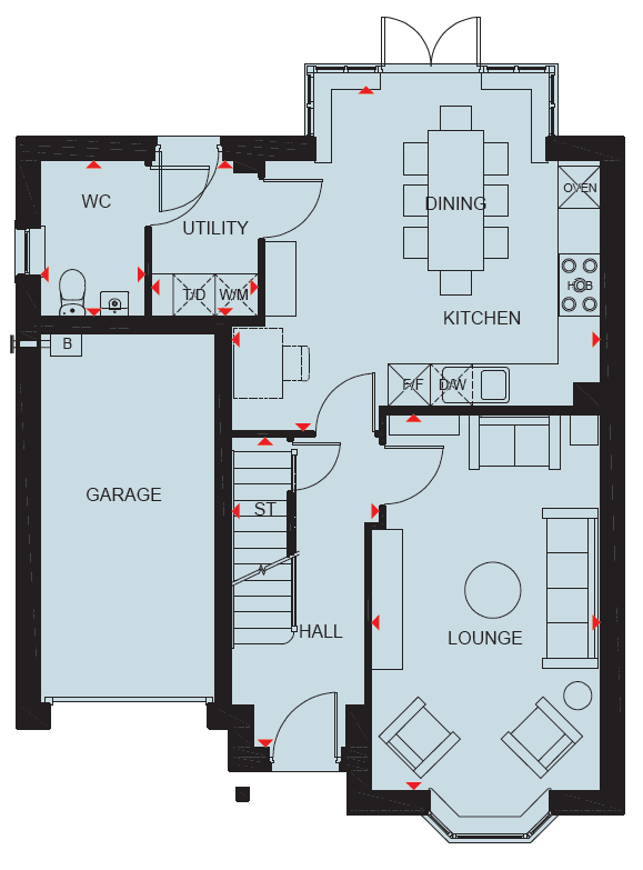 The Bemey is a popular four bedroom home with integral garage. The hallway leads directly into the kitchen family diner with glazed French doors opening onto the garden.