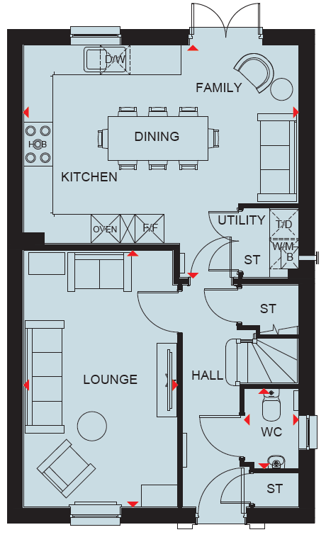 On the ground floor is the open plan kitchen/diner with French doors, which offers plenty of natural light. You will also discover a handy utility cupboard and lounge perfect for relaxing after a busy day. Upstairs you will find four bedrooms and a family bathroom. The main bedroom benefits from an en suite. Choose to use the two single bedrooms as they are or a convenient office to work from home.
