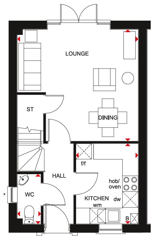 Brand new home with PHOTOVOLTAIC SOLAR PANELS and an EV CHARGER. Plot 155 | The Wilford | The Orchards, Ross-on-Wye | David Wilson Homes. There`s also a cloakroom and some understairs storage.