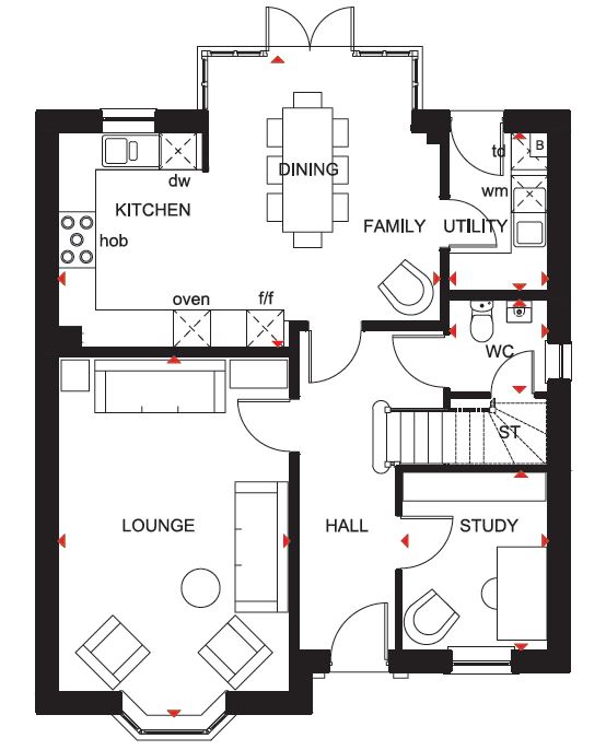 OVERLOOKING GREEN OPEN SPACE. On a private road on the edge of the development. Brand new home with PHOTOVOLTAIC SOLAR PANELS and an EV CHARGER. Plot 198 | The Holden | The Orchards, Ross-on-Wye | David Wilson Homes. This home has a spacious open plan upgraded kitchen with a dining area and French doors to your garden. The bay fronted lounge is perfect for relaxing in and the study provides a useful work space. Upstairs you`ll find an en suite main bedroom, three further doubles and the family bathroom. Comes with an EV charger, a garage and 2 parking spaces. PEACE OF MIND WHEN BUYING NEW: ENERGY SAVING technologies included, meaning you could enjoy lower bills. COMPREHENSIVE WARRANTY as standard for added reassurance. Need help with your mortgage? We can put you in touch with a New Build MORTGAGE BROKER.