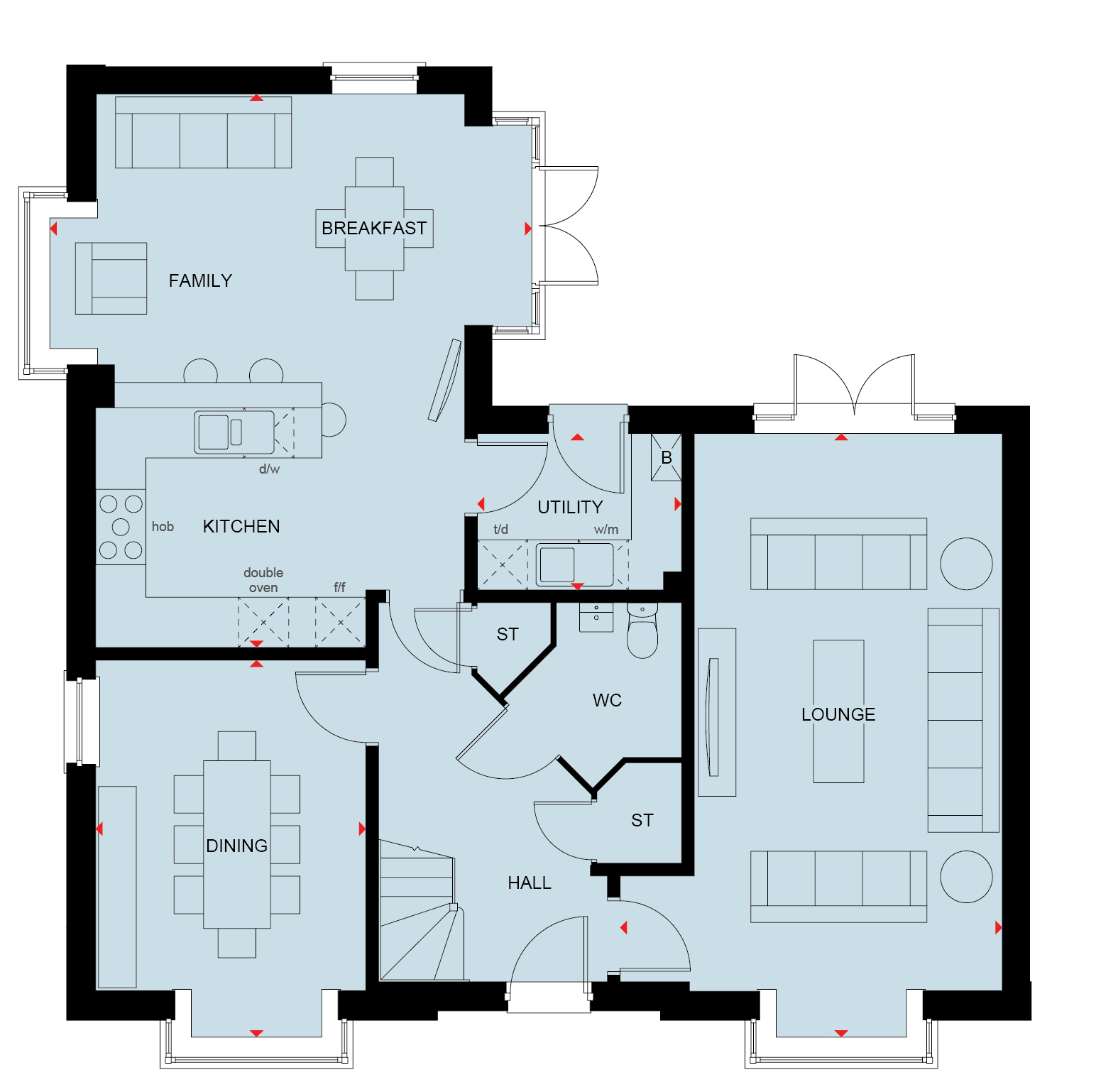 • Open-plan kitchen/breakfast/family room