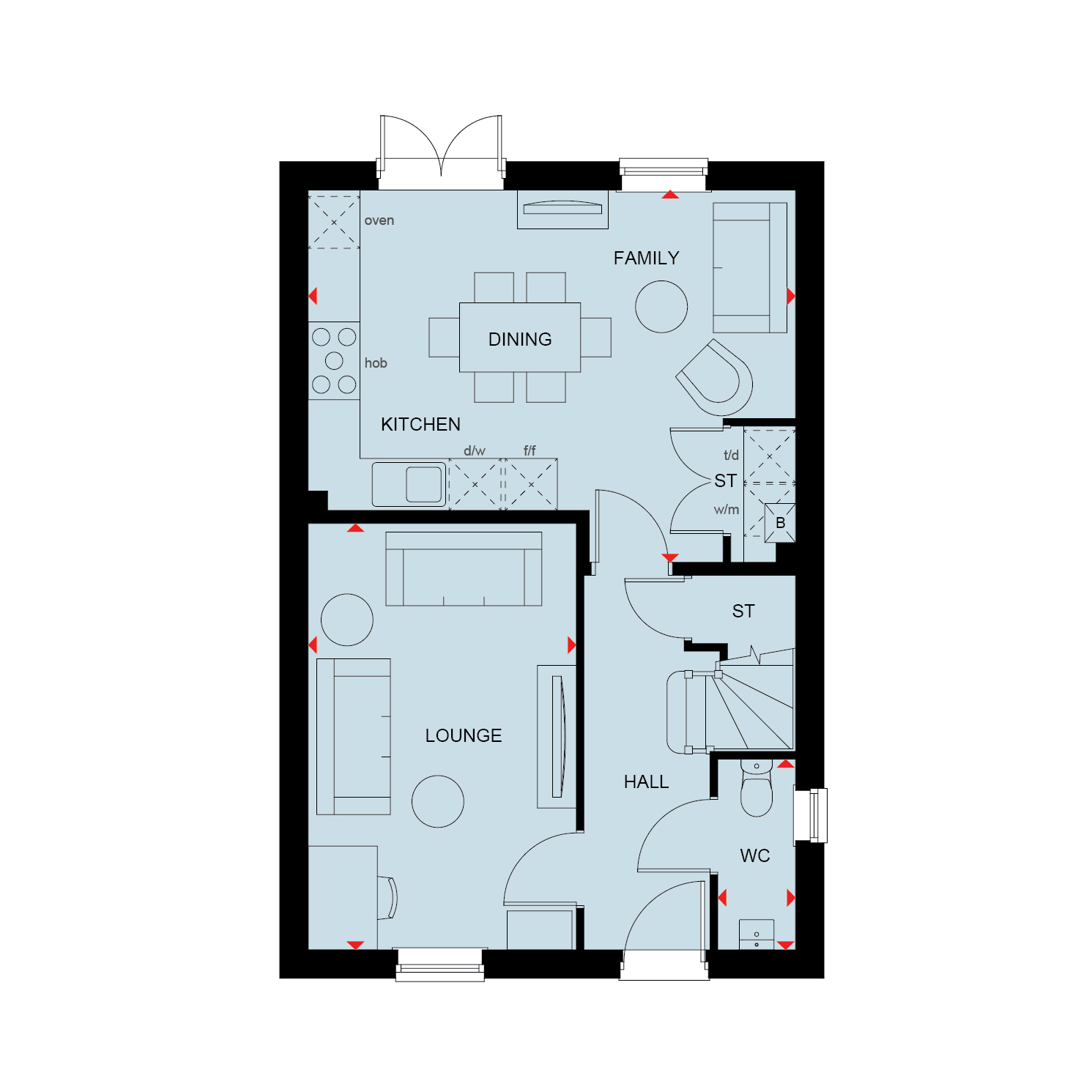 A home where your family can thrive. The hub of the home is the open-plan kitchen/dining/family room, seamlessly extending into the garden for effortless indoor-outdoor living. An additional utility space keeps everything neat and tidy. At the front of the house, a cosy lounge offers a peaceful retreat for quiet evenings.
