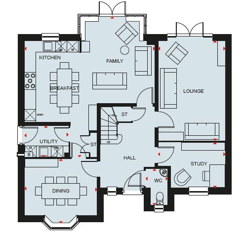 FIVE-BEDROOM FAMILY HOME with PLENTY OF SPACE | Downstairs you`ll find an open plan PREMIUM kitchen with separate UTILITY and FRENCH DOORS to the garden. There`s also a lounge with a second set of French doors, separate dining room and a HOME OFFICE. Upstairs you`ll find FOUR DOUBLE BEDROOMS, two with en suites, a single bedroom and a family bathroom. This home comes with a DOUBLE GARAGE and PRIVATE DRIVEWAY parking. WARDROBES INCLUDED to your main bedroom. Plot 2, the energy-efficient Manning at David Wilson Homes, The Nook, Wigston Meadows, Leicester.