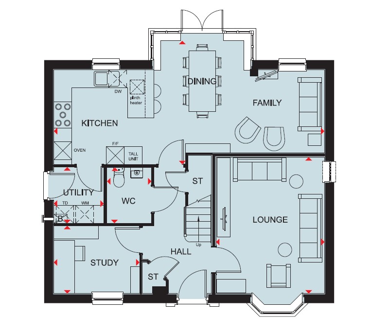 5% towards your deposit worth 15,999 + an upgraded kitchen package when you reserve this home. In the kitchen, you will find a handy utility cupboard. A spacious lounge completes this floor.