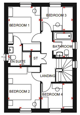 This four bedroom Ingleby features an OPEN-PLAN KITCHEN with FRENCH DOORS to your garden, a GOOD-SIZED LOUNGE and a downstairs W.C. Upstairs there are TWO DOUBLE BEDROOMS plus two single bedrooms with the main bedroom with its own EN SUITE. A GARAGE with parking for TWO CARS completes this lovely home. Plot 270, The ENERGY-EFFICIENT Ingleby, David Wilson Homes at The Willows