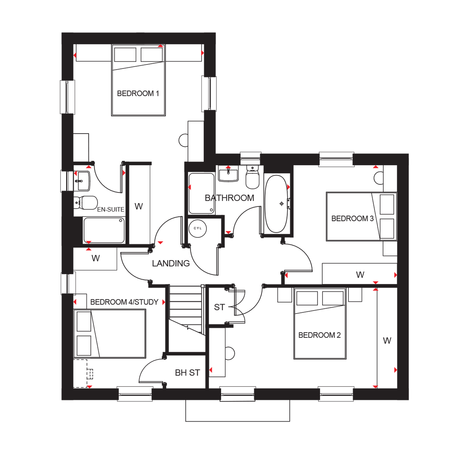 • Four double bedrooms