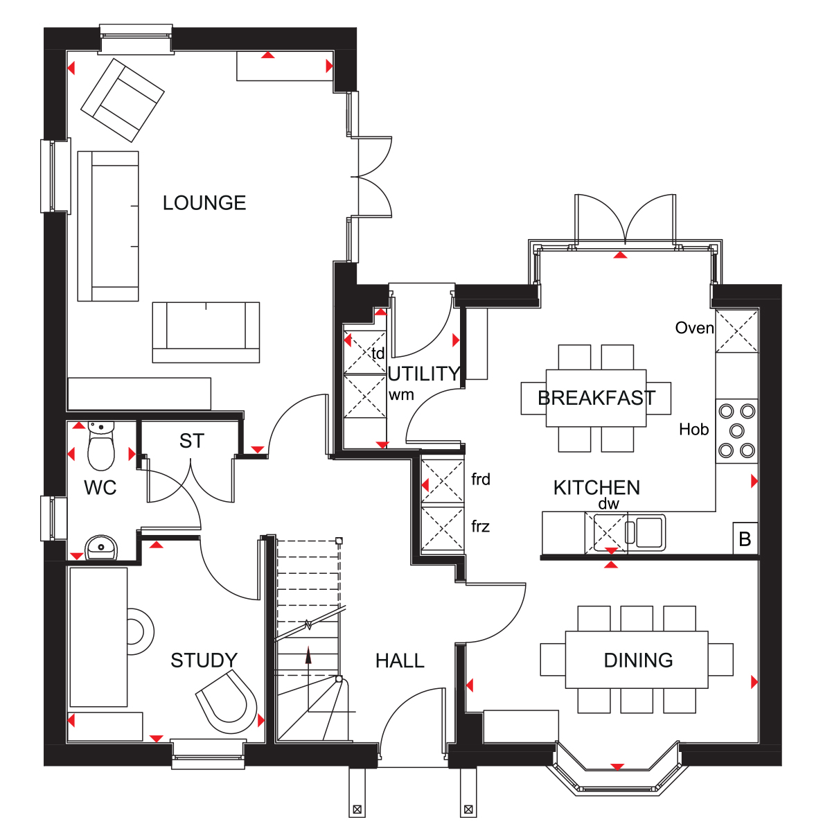 OPEN HOUSE EVENT - 4TH & 5TH APRIL - DOORS OPEN AT 10AM * DETACHED GARAGE * DRIVEWAY PARKING FOR 2 CARS * OVERLOOKING GREEN OPEN SPACE * HOME OFFICE * UTILITY ROOM * BAY-FRONTED DINING * Plot 435 Our Layton is a 4 bedroom detached home featuring an open-plan kitchen with dining area and French doors that open out to the rear garden. Your home also benefits from a spacious living room, a private study and utility room. Upstairs, you have an en suite shower in the principal bedroom, three further double bedrooms and a family bathroom. Call in and see us or book your personalised appointment.