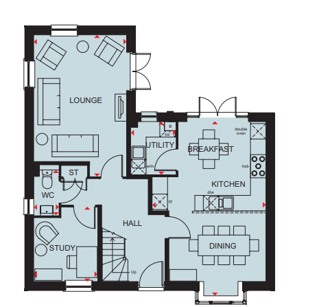 THE AVONDALE, 4 BEDROOM HOME The energy-efficient Avondale is ideal for families or those who enjoy entertaining. The open-plan kitchen connects to the bay-fronted dining area via a half wall. French doors to the garden are located within the spacious lounge and there is a separate utility room. The study is ideal for those who work from home. Upstairs are 4 double bedrooms, the main with ensuite. There is a separate modern family bathroom.