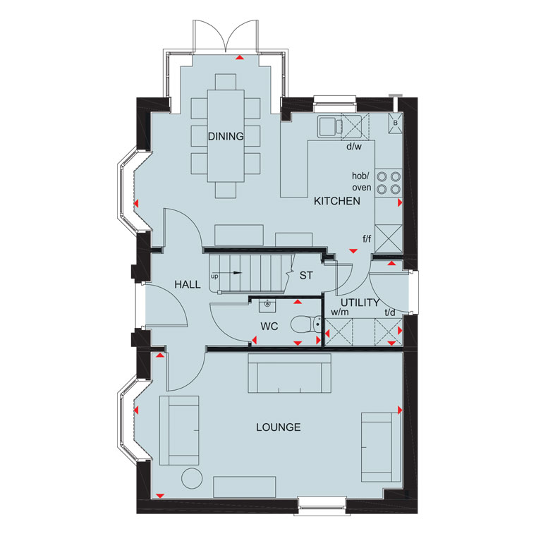 On the ground floor of the energy-efficient Kennett, you`ll find what is sure to become the home of the hub - the open-plan kitchen and dining area. There is also a downstairs WC for your convenience.