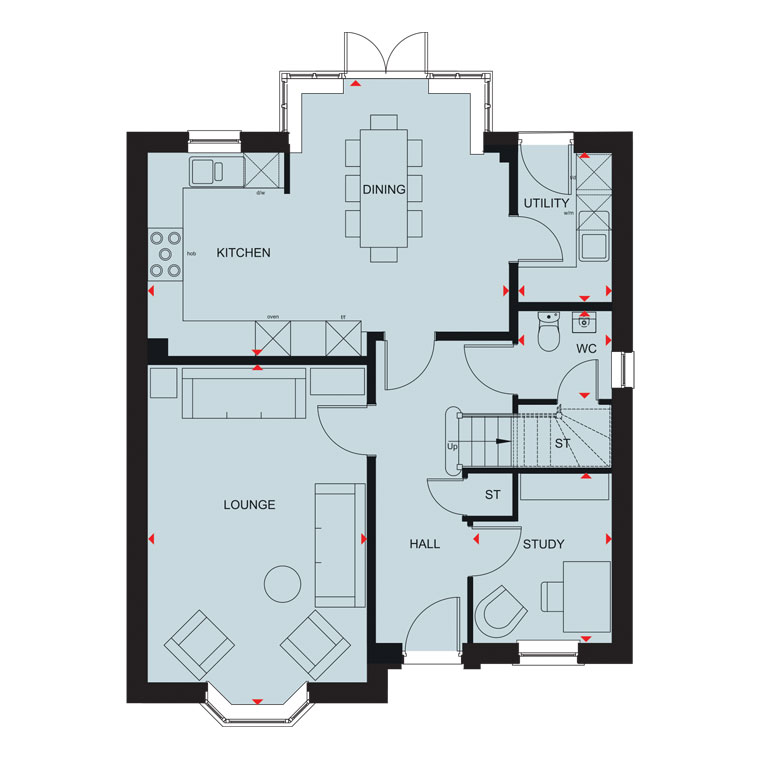 On the ground floor of the energy-efficient Kennett, you`ll find what is sure to become the home of the hub - the open-plan kitchen and dining area. There is also a downstairs WC for your convenience.
