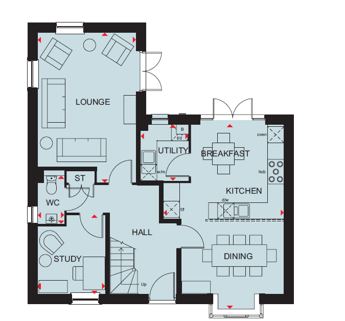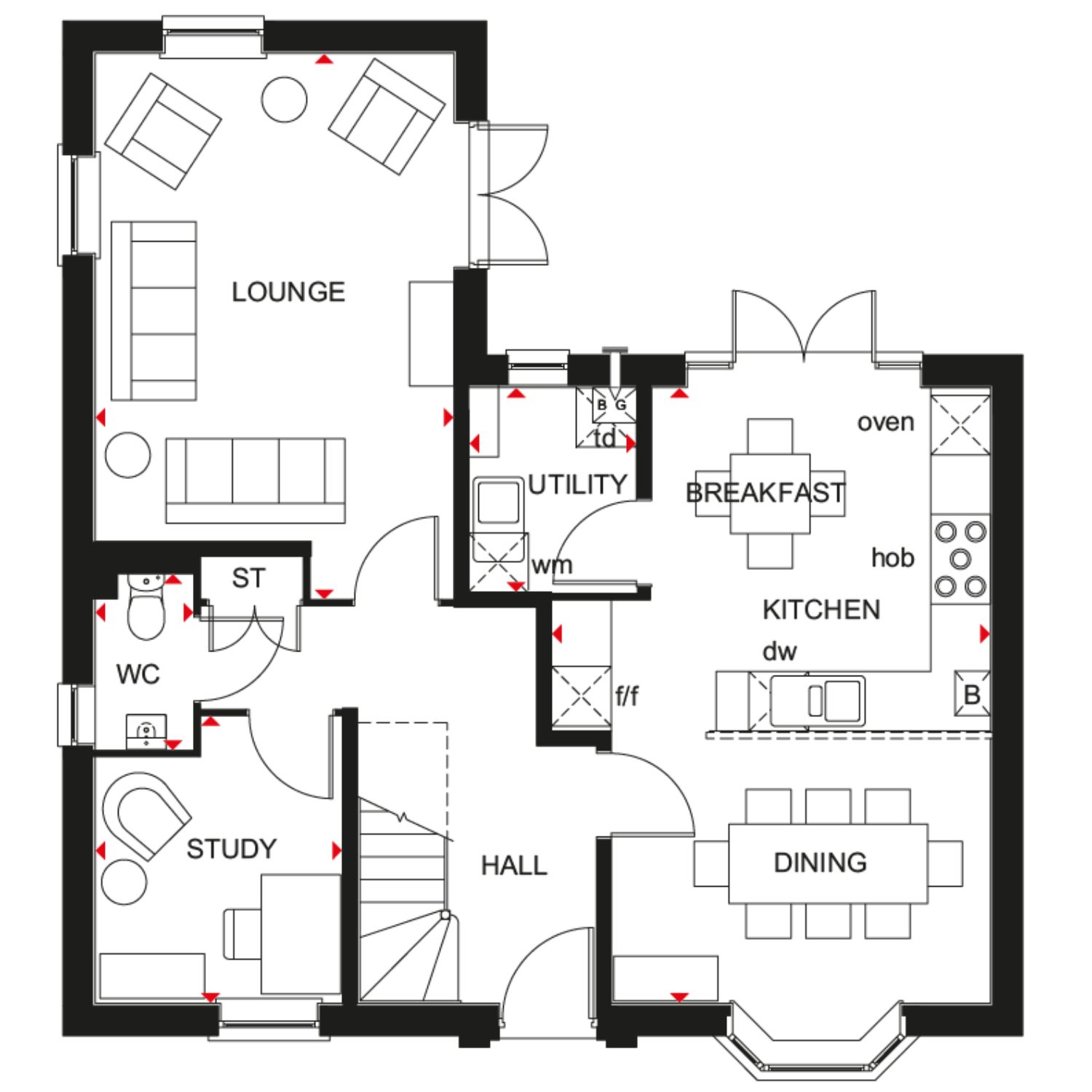 PLOT 210 THE HOLDEN AT PRIORS HALL PARK - A four double bedroom home with a spacious bay-fronted lounge and front study. At the rear, an openplan kitchen diner and utility room open to the garden.