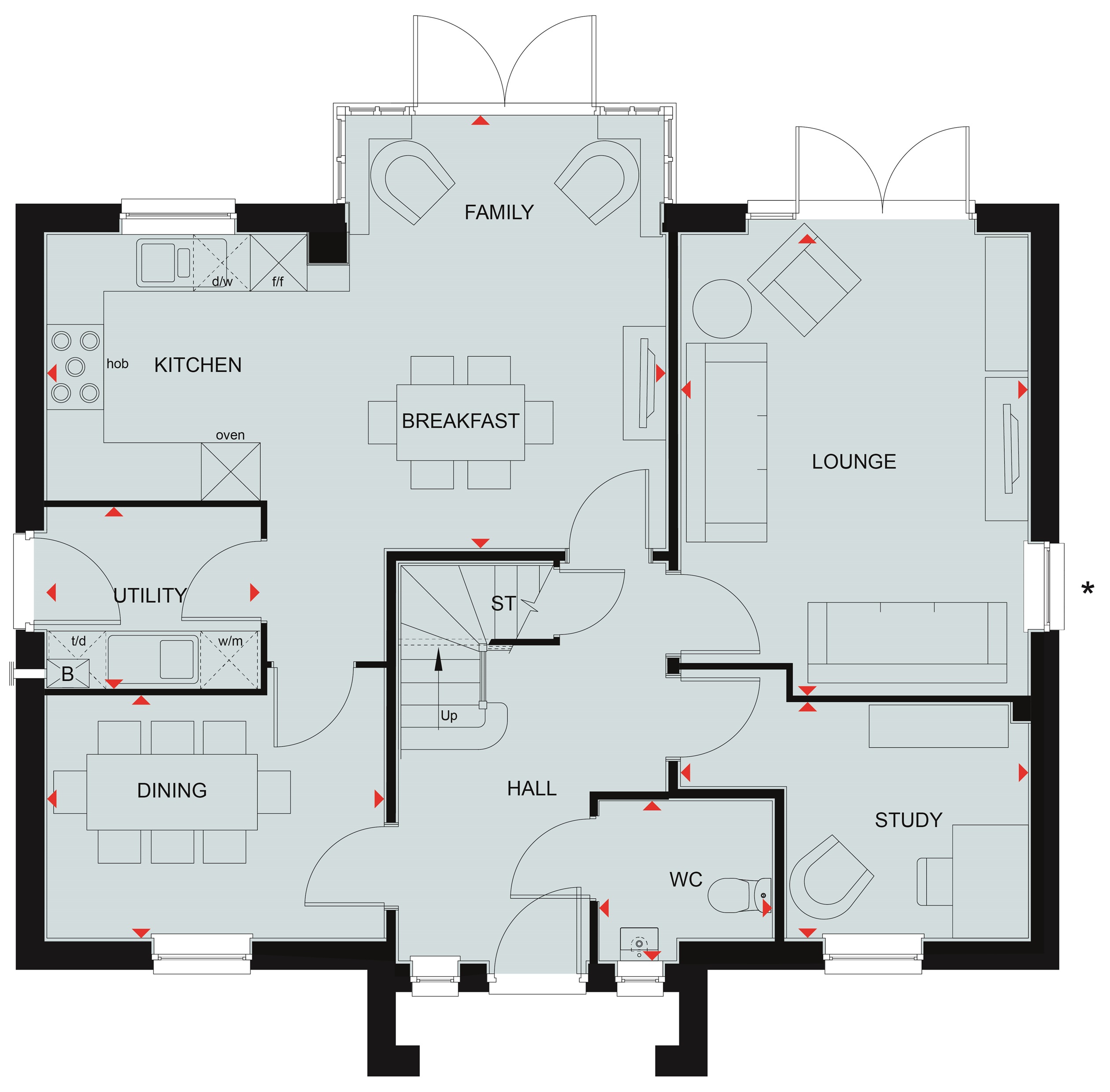 SOLAR PANELS & EV CHARGING POD INCLUDED - THE WINSTONE AT RIVER VIEW IN OUNDLE - This beautiful double fronted home offers an open-plan kitchen /family/breakfast room with separate utility room and feature French doors leading to your garden. The formal dining room, lounge and study complete the ground floor. The first floor is home to four double bedrooms and family bathroom with separate shower cubicle. Your main bedroom enjoys a dressing area and en suite.