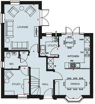 PLOT 38 THE PEREGRINE AT RIVER VIEW AT OUNDLE - The Peregrine is a detached family home. Downstairs you`ll find a spacious open plan kitchen/diner with a bay window. There is a handy utility room adjoining the kitchen with extra storage space. The ground floor is complete with a private study and spacious lounge . Upstairs you`ll find your main bedroom, with en-suite. This floor also features two further double bedrooms and one single along with a large family bathroom.