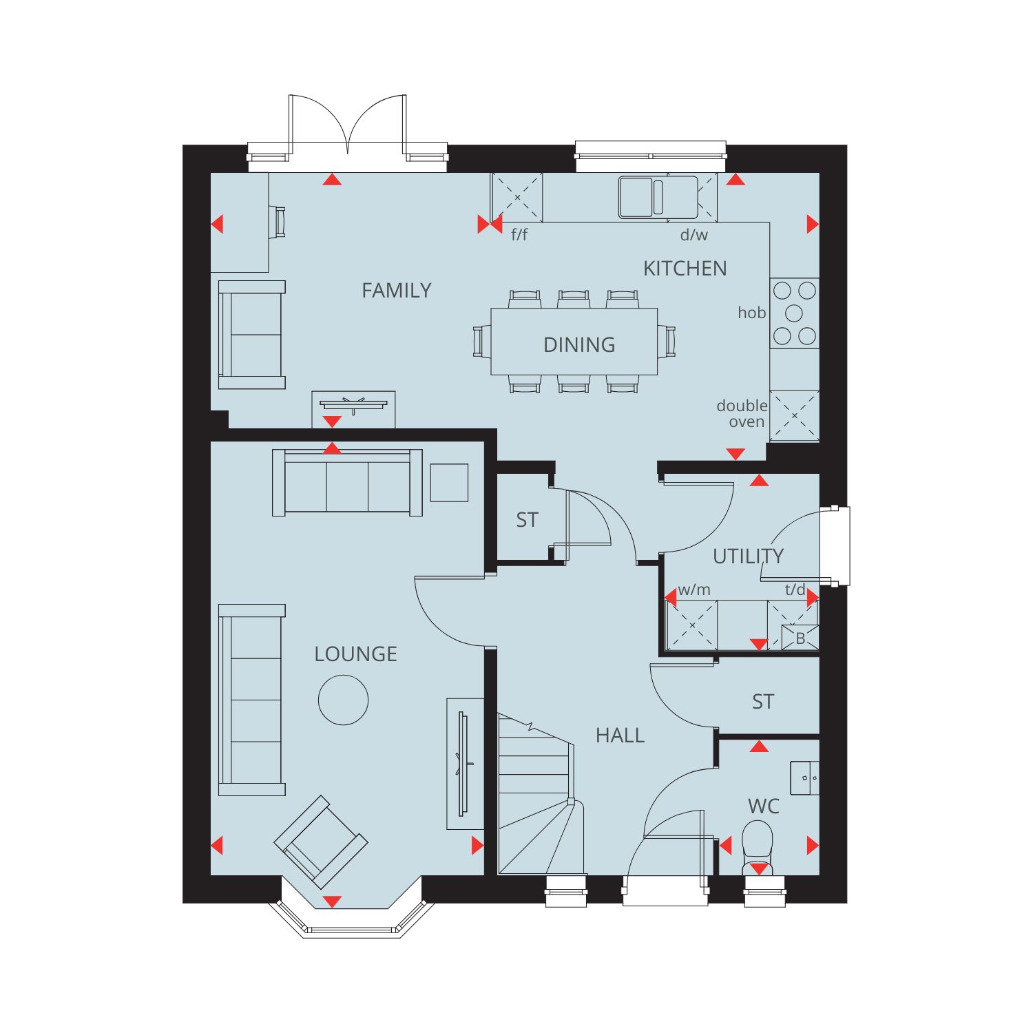 *PLOT 71* The Wychwood features an open-plan kitchen with dining area, utility room & dedicated home office. The generous lounge features a bay window & French doors that lead to the garden.